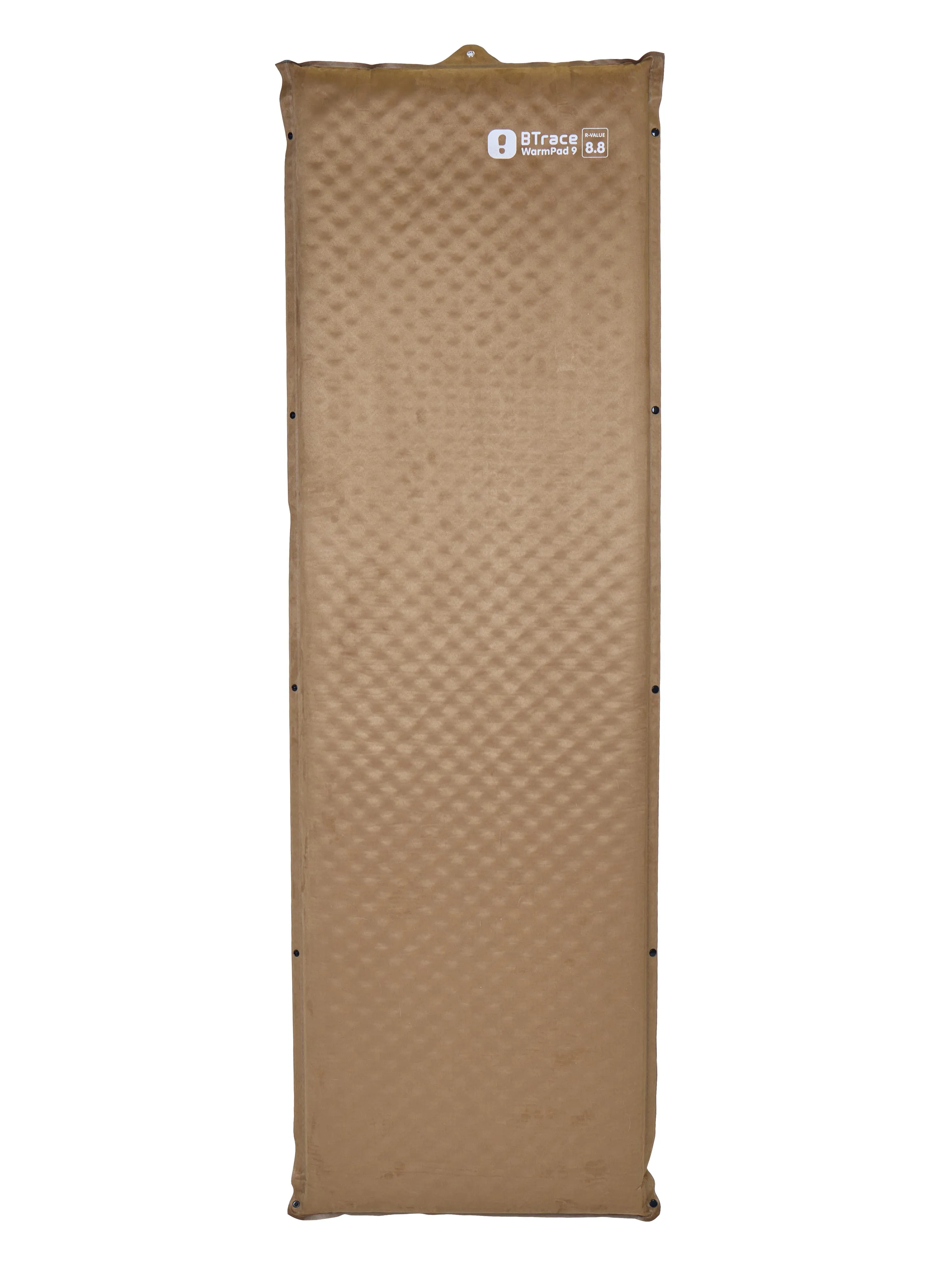 Все ковры и палатки BTrace имеют согласованные размеры (в трёхместную палатку можно положить 3 ковра). Самый толстый и удивительно комфортный коврик серии Warm толщиной 9 см для любых путешествий и кемпинга, прекрасный выбор для сна на любой поверхности и защита от неровностей и холодной земли. Благодаря своей толщине может служить дополнительным спальным местом дома вместо надувного матраса. Серия Warm отличается мягким флоковым материалом верха, по тактильным ощущениям похожим на замшу и специальным материалом дна, предотвращающим скольжение коврика. Специальная ячеистая конструкция наполнителя позволяет удержать вес и объём коврика в минимальных значениях, при этом обеспечивая комфортный сон. За счёт внутреннего материала коврик достаточно развернуть, чтоб он сам наполнился воздухом, потребовав лишь небольшой подкачки в конце. Коврик имеет 2 плоских клапана для более быстрого наполнения воздухом. Коврики можно состёгивать. В комплект входят ремнабор и удобный чехол для хранения и переноски.