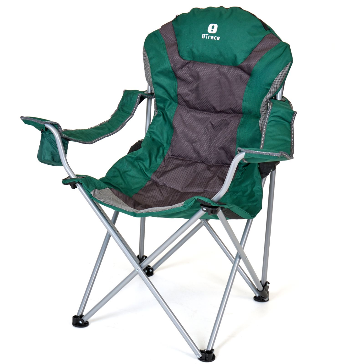 Это удобное кресло с 3 положениями наклона спинки для особого комфорта. В подлокотнике с регулировкой по высоте есть удобный подстаканник для ваших любимых напитков. В подголовнике находится мягкий материал и карман, позволяющий разместить там подушку. Стул сделан из высокопрочной стали 19мм и полиэстера 600D. Вес 4.5 кг и максимальная нагрузка 120 кг.