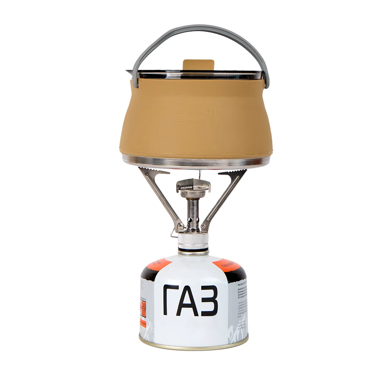Чайник Компакт 1л идеально подойдёт для случаев, когда нужна компактная посуда для использования с туристической плитой или горелкой. Силиконовый чайник с металлическим дном из высококлассного жаропрочного пищевого силикона почти не занимают места и весит всего 260 г. Все материалы экологичны и безопасны для использования в готовке пище.