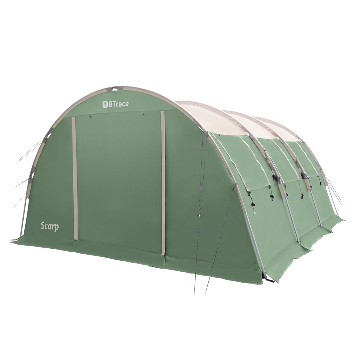 Палатка-шатер Scarp от компании BTrace это уникальный продукт, эксклюзивный на российском рынке. Эта палатка сочетает в себе надёжность конструкции, передовые усиленные материалы с уникальными узлами, делающими палатку ещё более крепкой и надёжный алюминиевый каркас 22мм. Проклееные швы на крыше. В итоге получился надёжный базовый лагерь или полевая кухня, или огромный ангар, с возможностью установки внутренней палатки размером 300*400 см и использования съёмного пола. Проклеены швы на крыше. Палатка получилась надёжной и практичной, с удобной и крепкой сумкой для хранения и переноски.